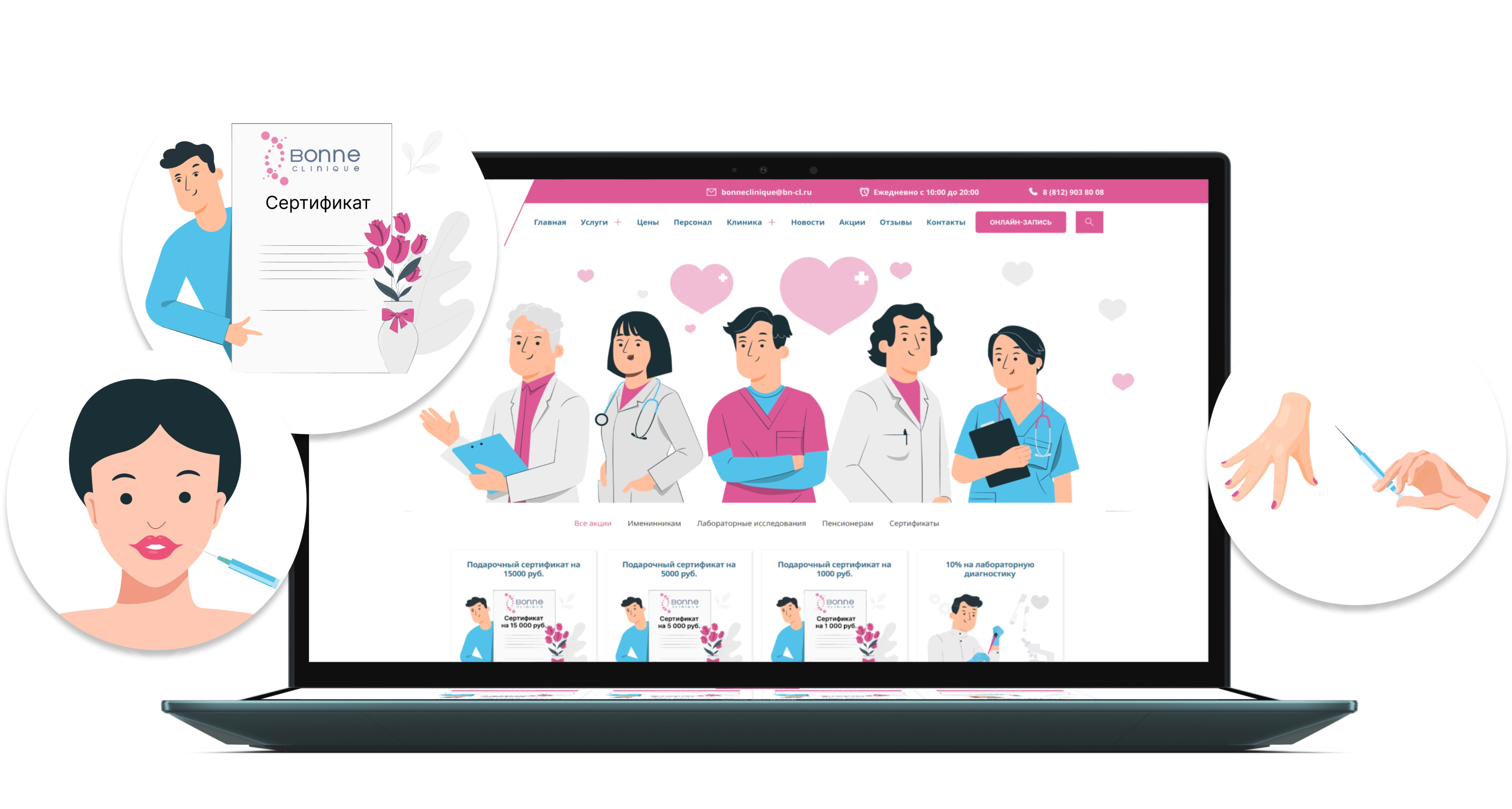 Иллюстрации для разделов сайта, которые помогут визуально представить услуги клиники
